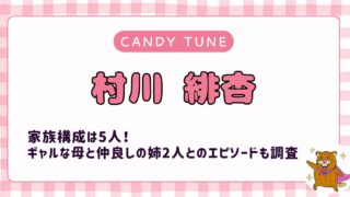 CANDY TUNE(キャンディーチューン)、ピンク担当の村川緋杏さん!明るくポジティブ!ムードメーカーな村川緋杏さんの家族構成について、徹底調査しました。村川緋杏の家族構成は5人!3姉妹の末っ子 この投稿をInstagramで見る...